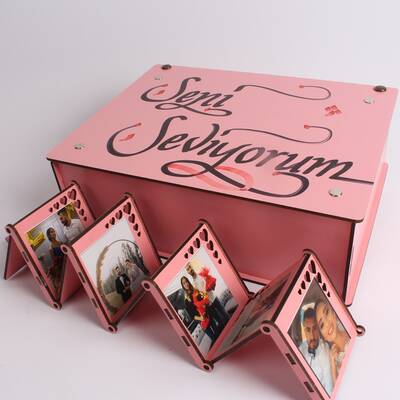 - İçeriğinde 12 Adet fotoğraf,10 Adet çikolata,1 Adet peluş,1 Adet Resimli Kolye,Kırımlı Fotoğraflık,1 Adet Bir Ömür Yastığı,1 Adet Işıklı Mum,Gül Kurusu,Kalpli Sözler vardır.