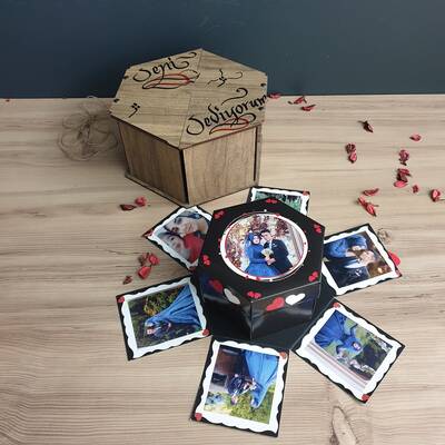 - Kişiye Özel Resimli Altıgen Hediye Kutulu Patlayan Kutu